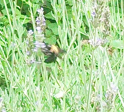 さて,ラベンダーの花には,どうやらおいしい蜜があるようです。毎日くまんバチがやってきて,しばらく蜜を集めています。