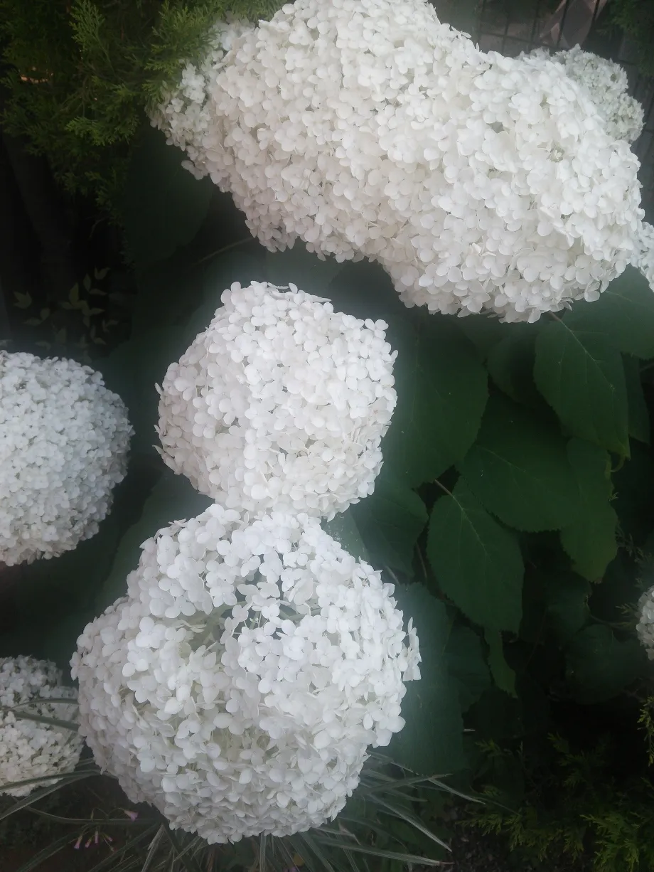 梅雨の花といえば,アジサイですよね。我が家にも真っ白なアジサイが咲いています。